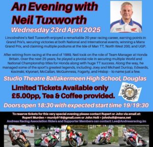 « All Events This event has passed. An evening with Neil Tuxworth 23 April @ 18:30 - 21:00 £5.00 « VMCC Trial at Arassey Plantation Stafford Bike Show » Add to calendar Google Calendar iCalendar Outlook 365 Outlook Live Details Date: 23 April Time: 18:30 - 21:00 Cost: £5.00 Venue Ballakermeen High School Organiser Rupert Murden Email murdy916@gmail.com 0 Comments Leave a Reply Cancel replyYour email address will not be published. Required fields are marked * Name * Email * Website What's on your mind? Save my name, email, and website in this browser for the next time I comment.